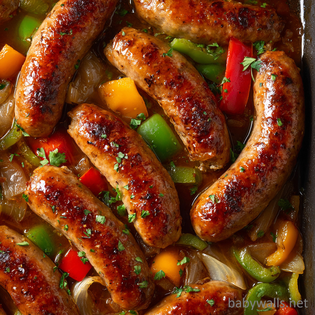 Baste Frequently – During uncovered baking, spoon the pan juices over the sausages to keep them moist and glossy.