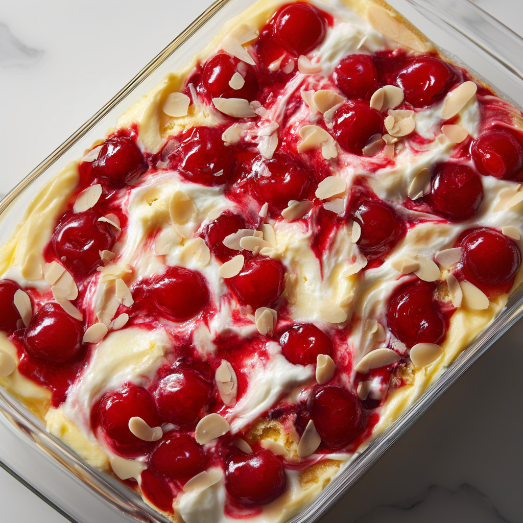 In a 13×9-inch baking dish, place half of the cake cubes evenly across the bottom.